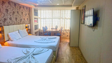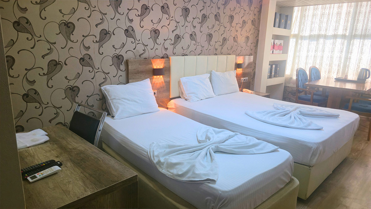 Gülizar Butik Hotel’in Double Odası, iki kişilik konaklamalar için konforlu ve şık bir atmosfer sunar. Odamızda isteğe bağlı olarak bir adet çift kişilik yatak ya da iki ayrı tek kişilik yatak seçeneği bulunur. Çiftler, arkadaşlar ya da iş seyahati yapan misafirler için ideal olan double odamız, hem estetik hem de fonksiyonel detaylarla donatılmıştır.